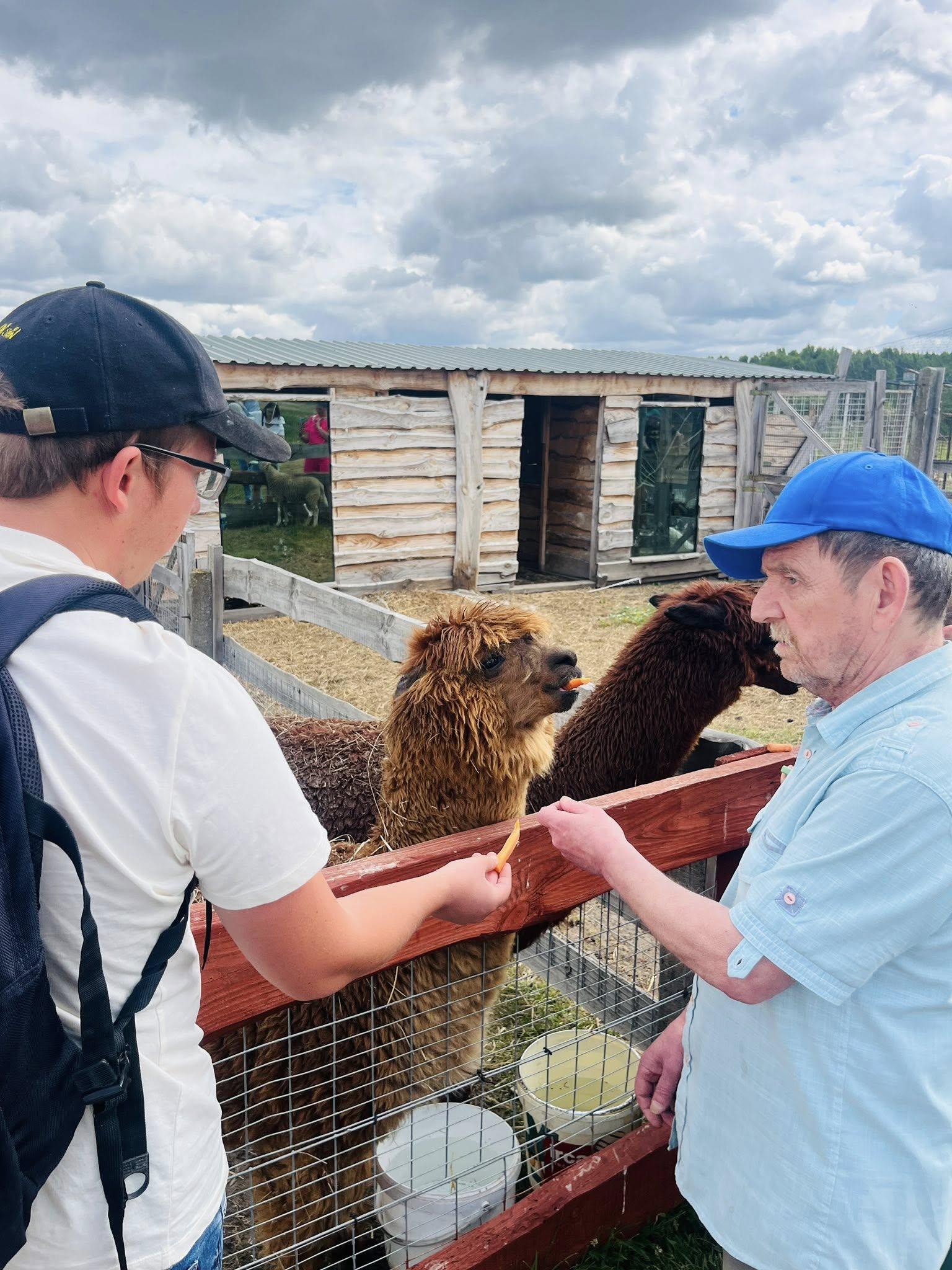 Podczas pobytu odwiedziliśmy wiele zwierząt, od owieczek i osiołków, przez konie, strusie, pawie, żółwie aż po alpaki, kangury, a nawet egzotyczne ptaki. Uczestnicy mieli okazję karmić zwierzęta, głaskać je, rozmawiać o ich zwyczajach i opiece nad nimi. Dla wielu z nich był to pierwszy tak bliski i czuły kontakt z żywymi zwierzętami, który dostarczył mnóstwa radości i emocji.